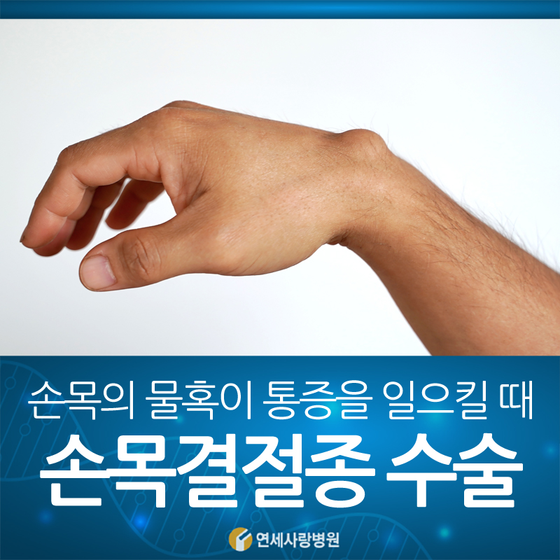 오늘은 손목에 나타나는 물혹, 손목결절종에 대해 말씀드렸습니다. 손목결절종은 자연적으로 터지거나 사라지는 경우도 있기 때문에 진단 시에는 추적 관찰을 필요로 하지만 손목의 혈관과 신경이 눌려 통증이 나타나게 되면, 증상에 맞는 치료 법을 적용하는 것이 좋습니다. 재발이 잦은 질환이므로 꾸준한 예방 관리는 필수입니다.