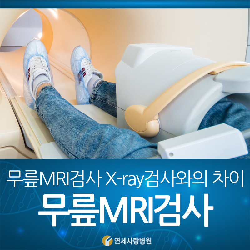 신체에 이상이 생기면 다양한 검사를 받게 됩니다. 특히 근골격계 통증으로 병원에 내원할 경우에는 다양한 영상 검사를 진행하게 됩니다. 흔히 우리가 알고 있는 영상 검사로는 X-ray검사가 대표적이며 이보다 좀 더 구체적인 검사가 필요할 경우에는 MRI검사나, CT검사를 고려하게 됩니다. 흔히 시행하는 검사지만, 각각의 차이가 있으며 적용할 수 있는 질환도 다양합니다. 오늘 연세사랑병원에서는 영상 검사 종류, 무릎MRI검사와 X-ray검사와의 차이점에 관해 다루어 보도록 하겠습니다. 자기장을 이용하여 신체 곳곳을 확인하기 위해 MRI검사가 필요하다. MRI검사(자기공명영상)란, 자기장을 발생시키는 큰 기계 안에 인체를 들어가게 한 후 고주파를 발생하여 신체 부위를 확인하는 검사 방법입니다. 인체가 자..